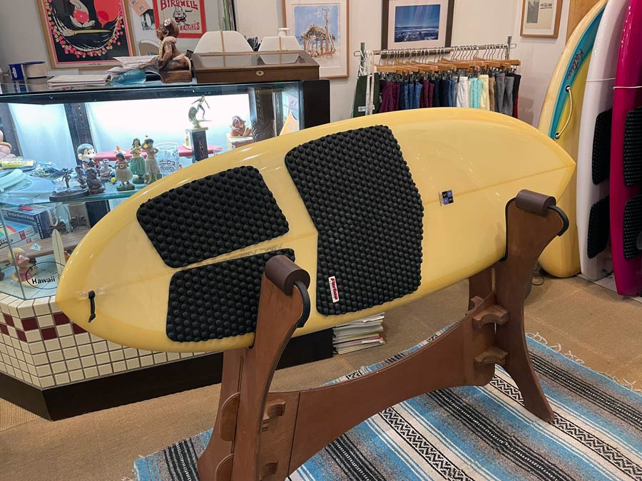 出番が少なくなってしまった自分で使っていた、ラウンドピンのニーボードをユーズドボードでお出しします。5’7”でボリューム多めです。良く動いてくれて、浮力もあるのでモモ・コシくらいから楽しめます。良かったら乗ってみてください。