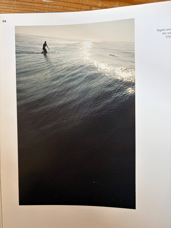 「Rights and Lefts」トロリと溶けだしそうな海面。手前の暗さと陽光で煌めくうねりの対比。そこをニーパドルで越えていくサーファー。こんな雰囲気の写真をそれまで見たことがありませんでした。