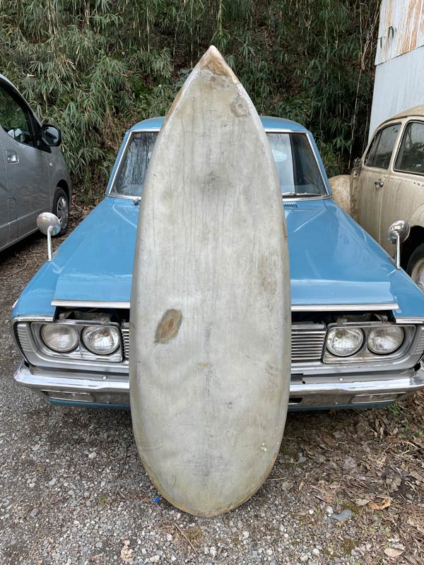 ボリューム感は私の9’3”と同じくらいですが、レールが違います。私のはボトムから軽く「まくった」ソフト目のダウンレールですが、このTOTOはオーダーされた方のご要望で、「しっかりとした」ダウンレールです。こちらの方がよりコントロール性が生まれます。