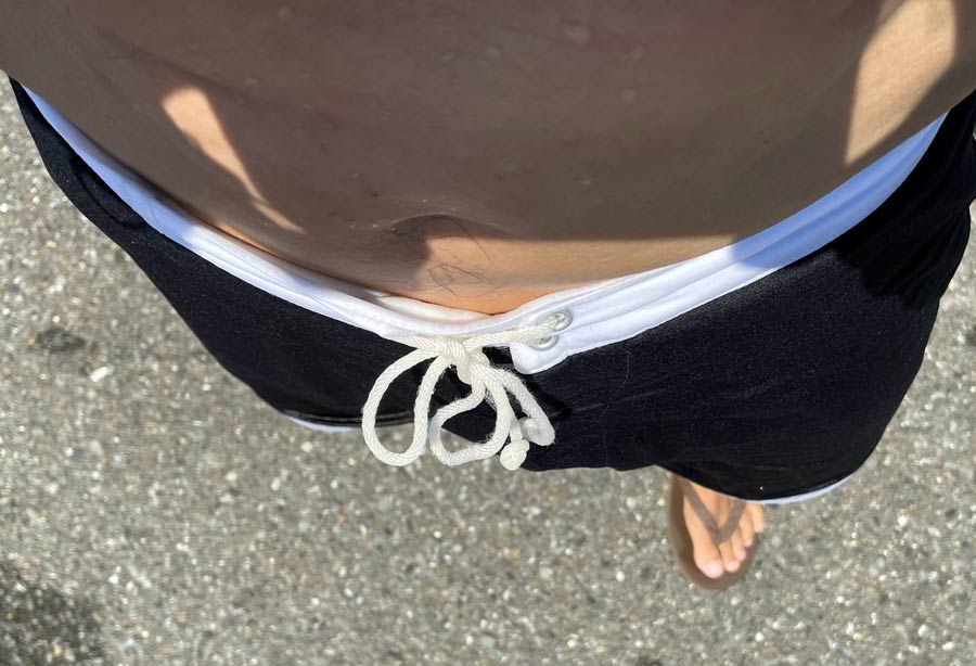 トランクスはNALUTOを履いておりました。NALUTOは硬めでしっかりと織られたヒモを使っているのでどうしても解けやすくなってしまいますが、この蝶結びならごらんのとおり、ずっと解けません。