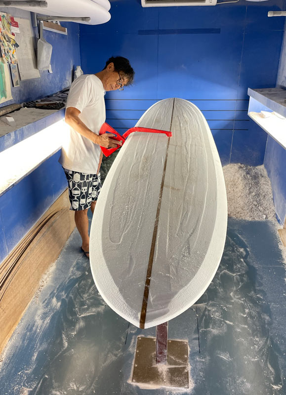 ショップのオープンは2001年。それ以来、ロングボードをベースに、フィッシュ、ボンザー、シングルフィン、ニーボード、パイポとさまざまな種類のサーフボードを作り、試してきました。
