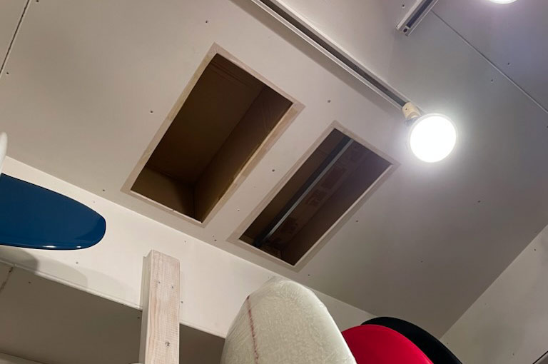 見ていたら自分も欲しくなっちゃったなあ。以前、11フィートクラスを何本か置いていたころの名残りが天井に残ってます。グライダー、好きなんですよ。