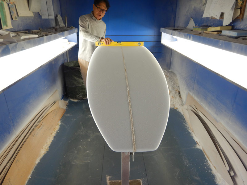 サーフボードだってそれと同じです。シェイプルームの照明の下で、陰影をくっきりと浮かび上がらせるフォームの造形。指先に感じる細かい粉と、流れるような滑らかな手触り。シェイプのことが良く分からなくても、サーファーだったら、わー、すげーと思うはずです。