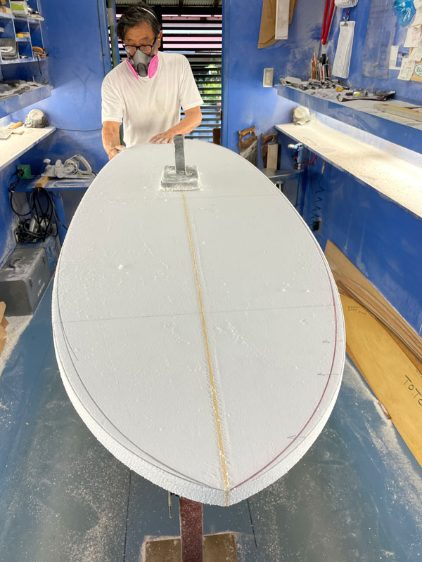それを確かめるためのテストシェイプなのですが、サーフボードを作る楽しさというか、醍醐味のひとつだと思います。
