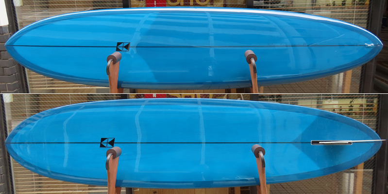 フィンはテールから15インチという非常識なポジションです。でも、このフィンの形だとそんなに変じゃありません。むしろしっくりくるように思います。