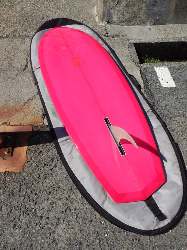 レングスは6’6”。オリジナルのホットマンゴーなら大抵の大波は行けてしまうガンサイズですが、これは幅を出して、ボリュームを残したシェイプに仕上げた「ミッドレングス」のホットマンゴーです。