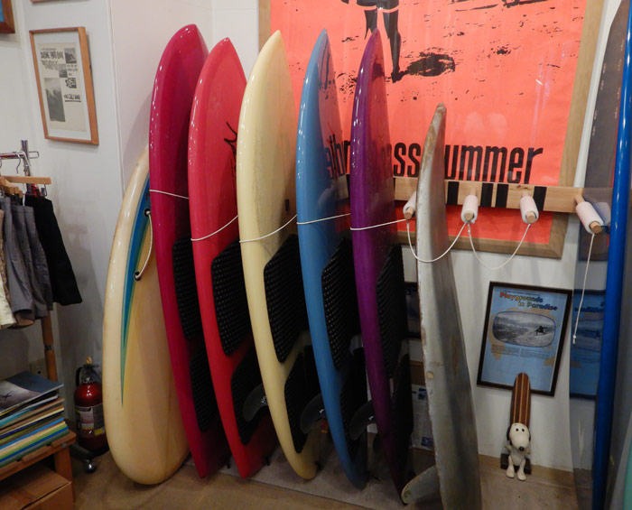 ショップのオープンは2001年。それ以来、ロングボードをベースに、フィッシュ、ボンザー、シングルフィン、ニーボード、パイポとさまざまな種類のサーフボードを作り、試してきました。
