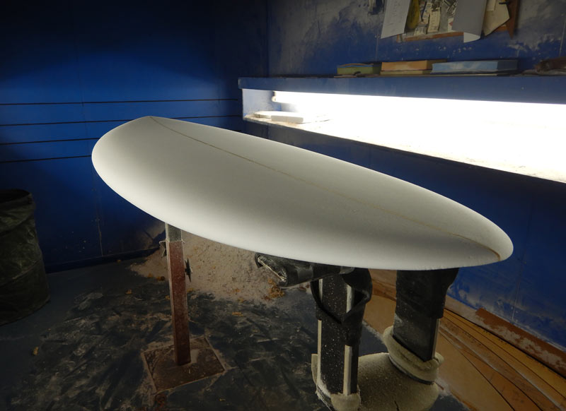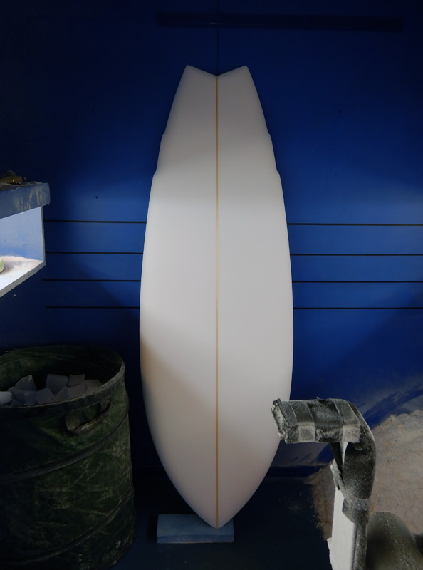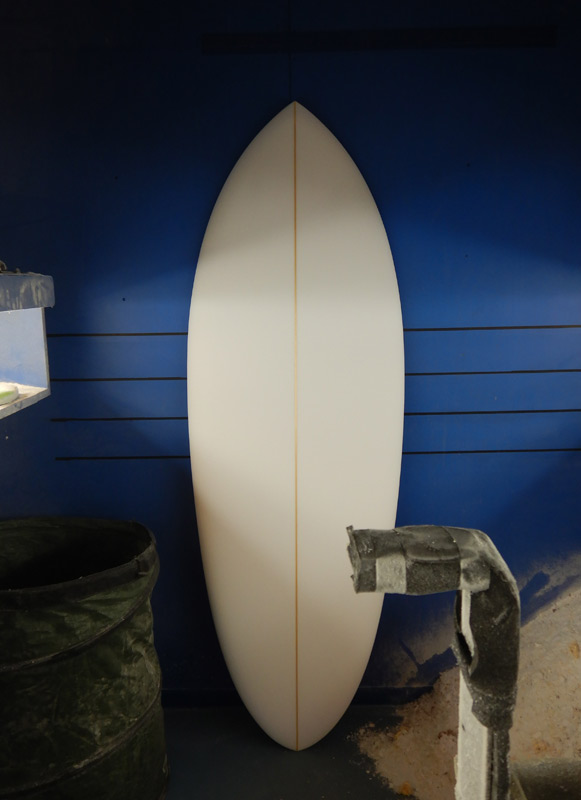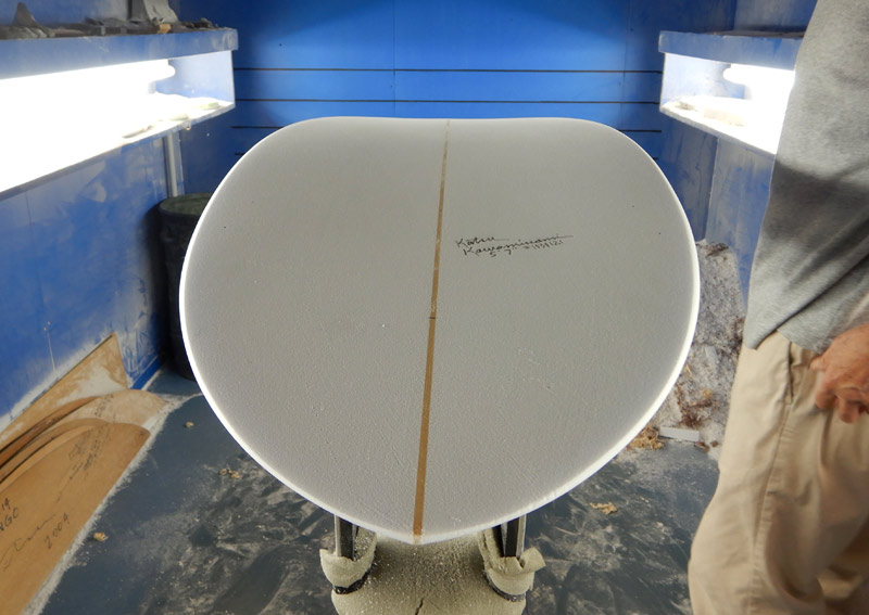 ラウンドピンはもう一本、ボリューム多めで6オンスラミネートのしっかりした重量のものを一本持っています。これも面白いのですが、今回のラウンドピンは4オンスラミネートで薄く軽く、ロッカーも違うので、ボードの性格も変わってきます。実際に乗ってみないと分からない部分ですが、どんな世界を見せてくれるのか楽しみです。