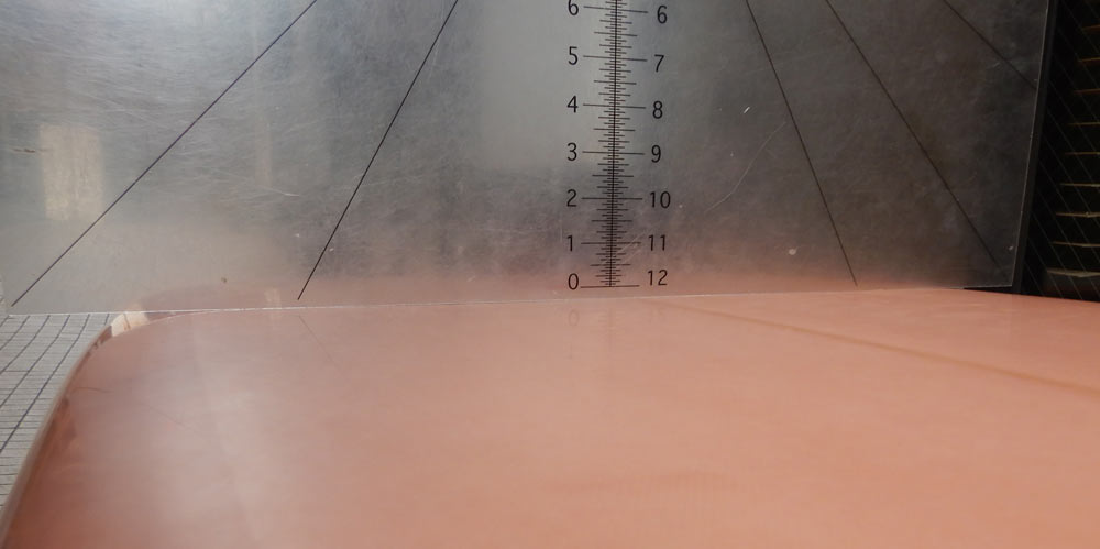 ロッカーを変える以前のニーボードと比べると、テールエンドは数値で見る分には大きく変わりません。違うのはそこへ到達するまでのロッカーの入り方です。スピードを意識してよりフラットなパートが少しだけ増えています。そこからフリップ気味にテールロッカーが入ってくる形状です。