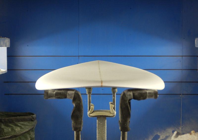 これまでに無くボリュームを落としたレールの手触りです。このブランクスの特徴で、テールは自然と薄くなります。ノーズも薄い。前回のウィングスワローもそうでしたが、ブランクスが変わるとボード全体の雰囲気も変わってきます。