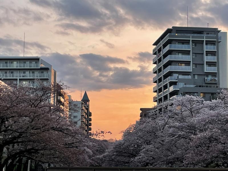 海へ行く途中。シェイプルームからの帰り道、至る所で桜がきれいに咲いています。咲くのが早かったのですが、なんとなくいつもより散らずに長く咲いているような気がします。