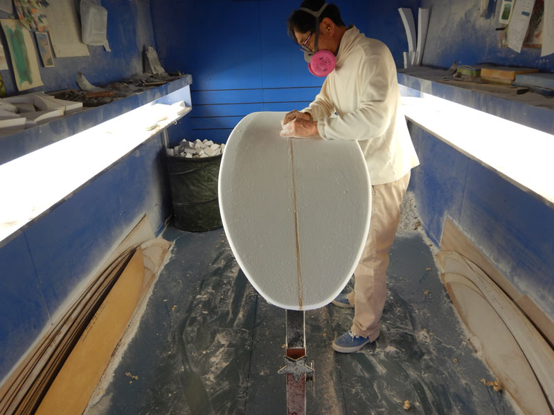ショップのオープンは2001年。それ以来、ロングボードをベースに、フィッシュ、ボンザー、シングルフィン、ニーボード、パイポとさまざまな種類のサーフボードを作り、試してきました。