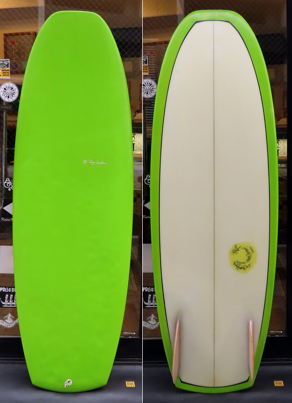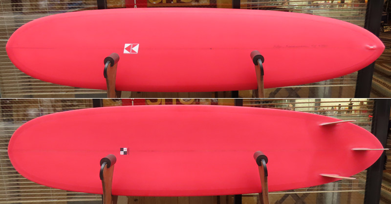 ピンテールのノーズライダーは短めの9’2”です。取り回しが軽いノーズライダーをお探しの方にはばっちりです。こういう板は、サイズがある波でも使いやすいのです。波の高い位置でのノーズライドは結構スリルあります。