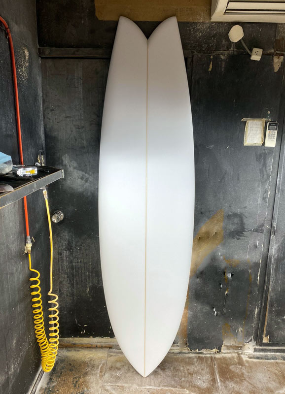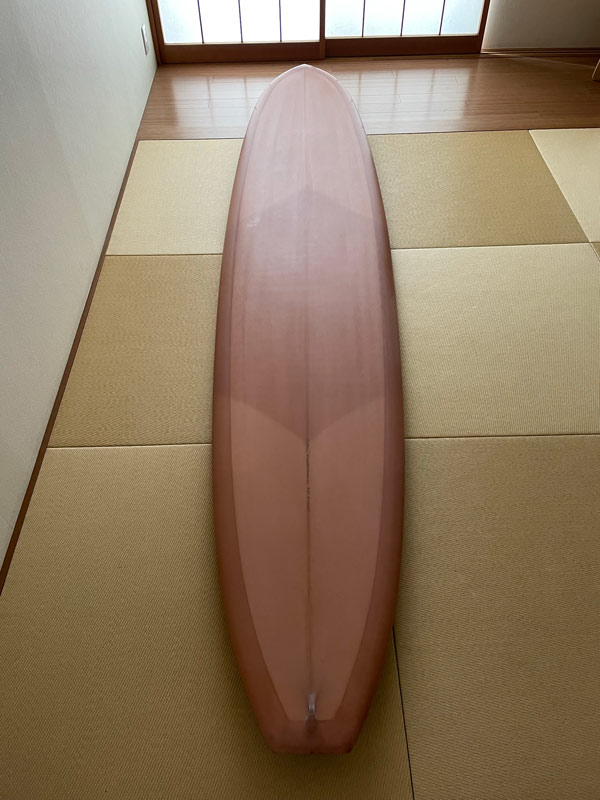 もう7~8年前のことです。今作るとしたら、時間が経った分(歳取った分)だけ長くして、6’8”くらいか。アウトラインはプリモフィッシュか、6’8”ならMINIと同じような丸いノーズにしたら、滑り出し速そうです。