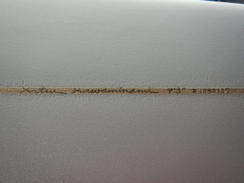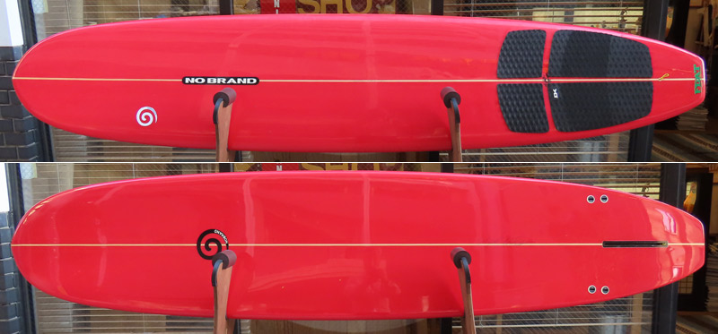 もう一本はユーズドボードです。活さんの盟友でもある鎌倉のレジェンドシェイパー、出川三千男氏シェイプのオールラウンドロングボードです。レングスは9’2”。フットマークが少しだけのベリーグッドコンディションです。