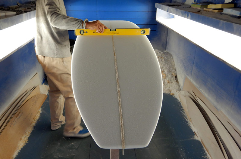 笑った顔からも伝わってくると思いますが、とても真面目な職人です。彼のボードをラミネートしているのは川南活さんのボードもラミネートしてくれている湘南の老舗ファクトリーですが、そこの熟練職人が彼のシェイプにたいする姿勢に感心していました。