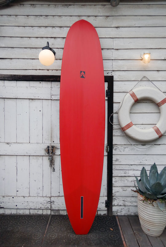 画像のボードのサイズは、9’2”x23”x2”7/8。幅はしっかりとられていても、細めに見えるのはきれいに流れるアウトラインのおかげだと思います。