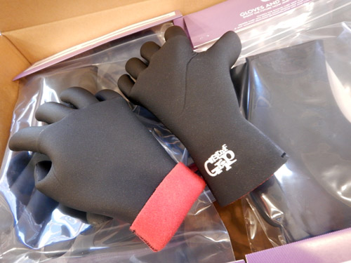 外に干していたら夕方少し凍ってましたが、すっきり乾きました。新しくした、SURF GRIPのグローブはフィット感ばっちりです。古いグローブは親指の腹が擦れて穴が開きかけていますが、実はまだ使えます。もちろん穴が無いのがベストですが、グローブは手先をカバーするというのが主な目的なので、古くなって浸水が始まっても使えます。