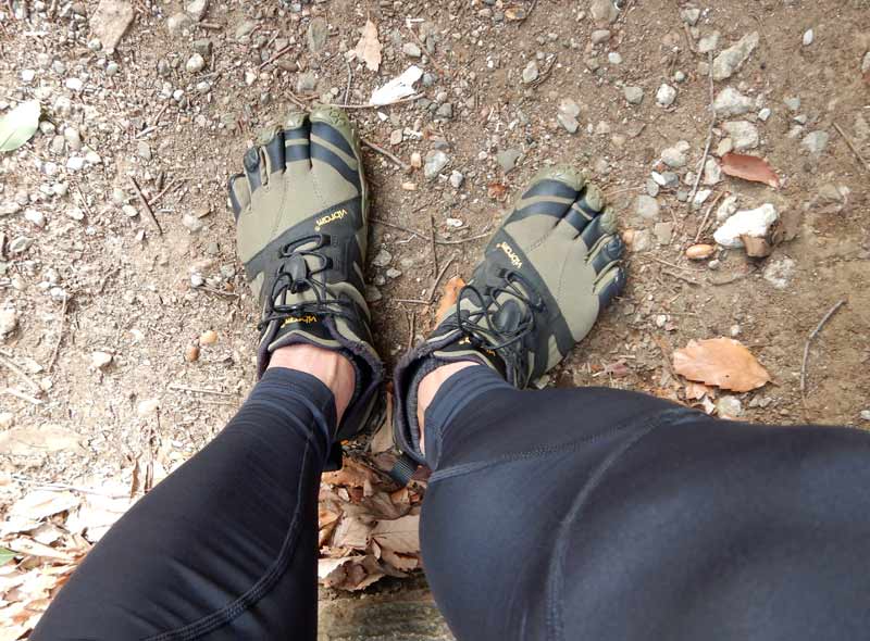 今朝は足の裏と足指、フクラハギ強化を考えてペースを押さえてフィンガーシューズで走りました。