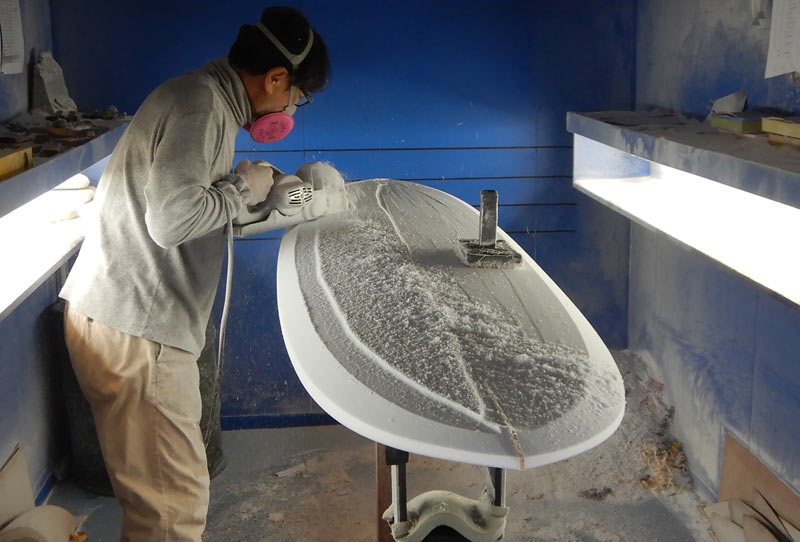 ショップのオープンは2001年。それ以来、ロングボードをベースに、フィッシュ、ボンザー、シングルフィン、ニーボード、パイポとさまざまな種類のサーフボードを作り、試してきました。