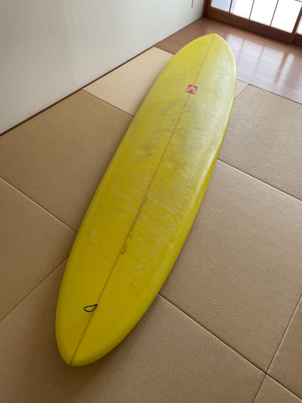 それを形にしたのがこのイエローのプリモです。ロングフィッシュのブランクスで作ることができるサイズは、8’3”が最長なのです。だから8’3”(フィッシュは8.0までです)。