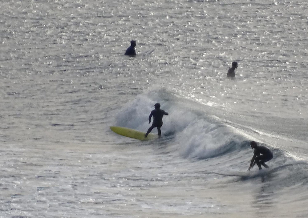 なーんとか残りました。これから少しだけ潮が引いてきます。長い板ならじゅうぶん楽しめそうなモモ、コシです。