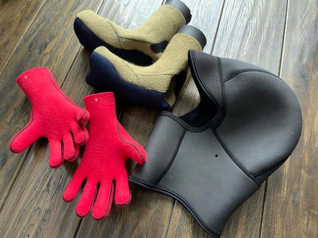 裏返したブーツやグローブは、事前に元に戻しておくのをお勧めします。裏返しのまま車に放り込んでおいたのを早朝の寒い海辺で元に戻すのは、ブーツやグローブは冷え切っているし、指先もかじかんでいるのでかなり大変な作業です。