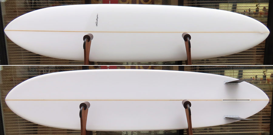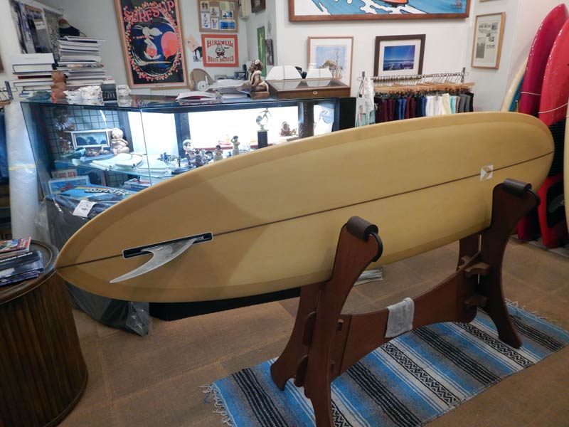 プリモ8’4”のストックボードが入荷しました。久しぶりですが改めて見ていると、やっぱりコレだよな~と思います。上の画像でも分かってしまう特徴的なボトムとレール、8’4”のなんとも言えないボリューム感の、大きすぎずも小さくもない絶妙さ。同じサイズを何本も乗り継いできているからというのもありますが、やっぱりコレです 笑。