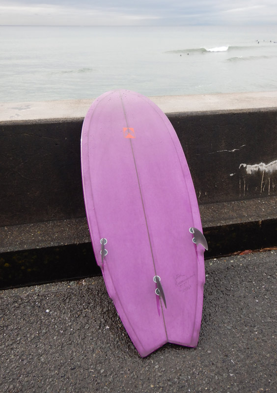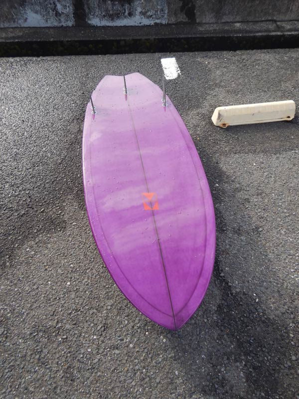 そこへたどり着くまでフィンの位置を前後に変えて試し、テールが重くなりすぎたり、フィンが抜けてルースになり過ぎてしまったりと、試行錯誤を繰り返した結果が今のフィンセッティングです。同じテール形状でも、テールのラインによってセッティングが変わってくる可能性も大ですが、決まると驚くほど調子が上がります。
