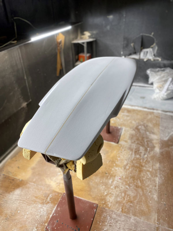 ブランクスを変えてのテストボードですが、ノーズとテールは今までよりも薄く、テールロッカーが気持ち強めになっています。