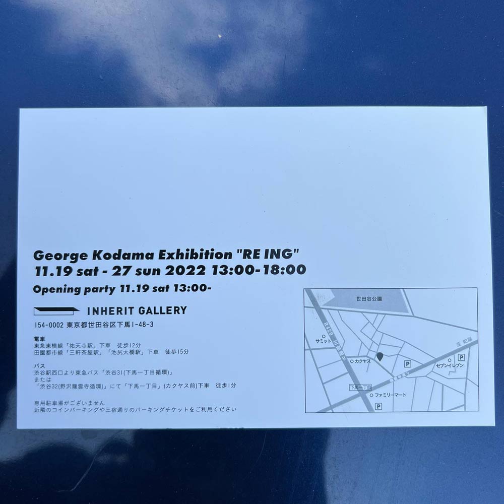 そのジョージくん、来週11月19日(土)から世田谷の「INHERIT GALLERY」で何やらやるようです。本人は初日と最終日に居るそうです。お時間ある方は足を運んでみてください。
