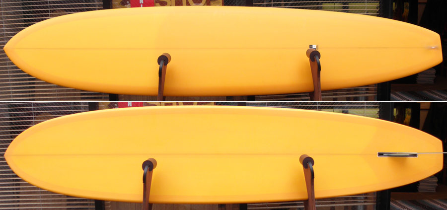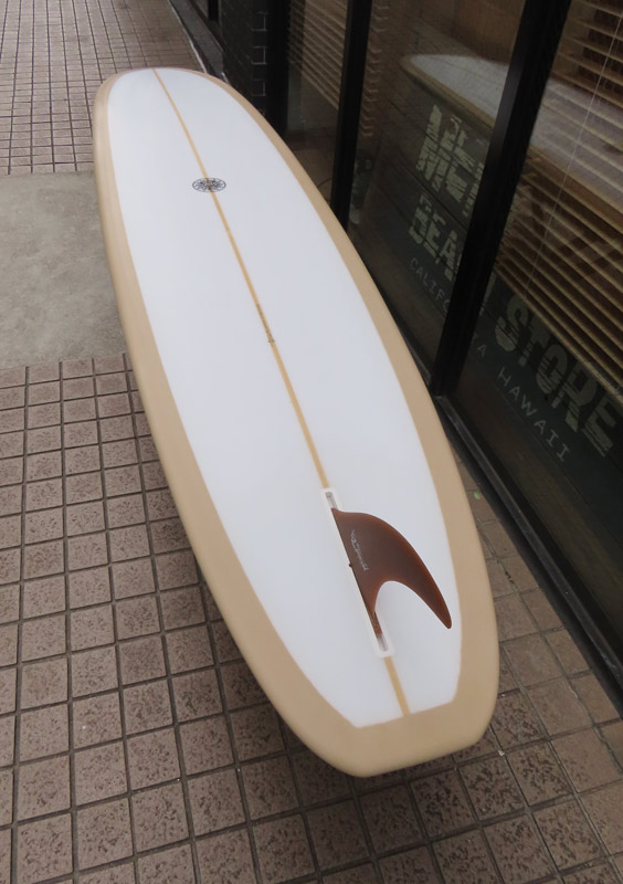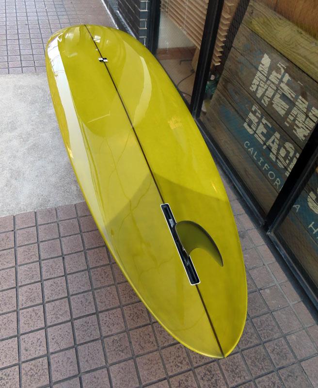 お気に入りの8フィートのプリモの真ん中あたりだけを良いとこ取りしたとも言えるかもしれません 笑。真面目な話、自分でも乗っていたことがありますが調子いいシングルフィンですので、シングルフィンのエッグボードをお探しの方はお見逃しなく。