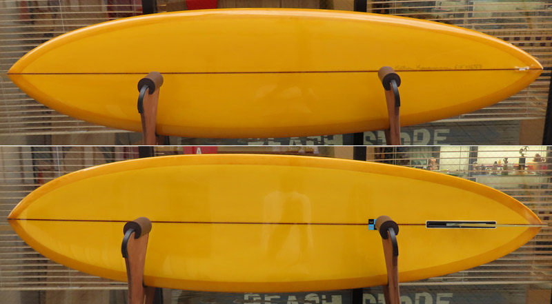 ラウンドピンテールのツインフィンは、ちょっと前にジョエル・チューダーがプロデュースしていた、KOOKBOXのレーベルで作られていたのが記憶に新しいですが、当時はまだミッドレングスサイズのサーフボードは今ほどポピュラーでなく、一部の好事家が乗っていたくらいでした。