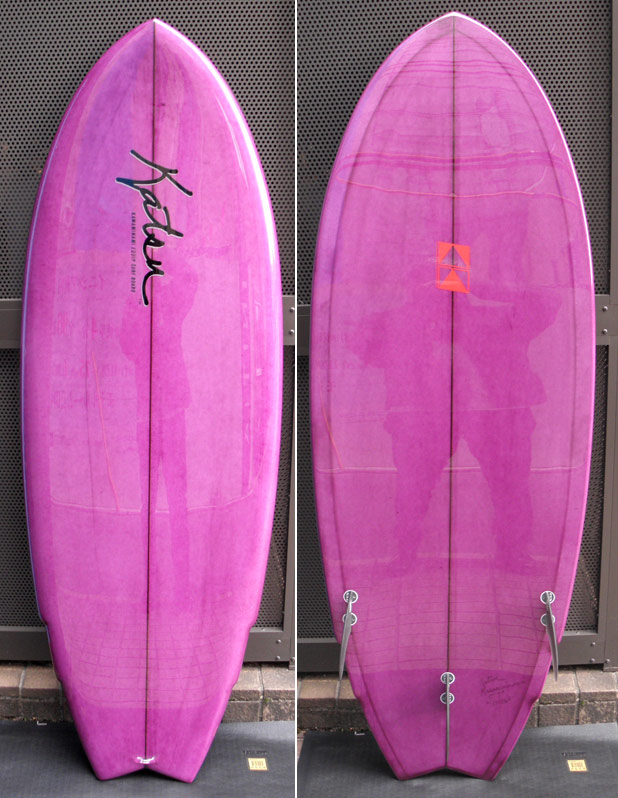 これです。このスワローテールも調子良かったのです。このボードはレングスが5’6”で、幅が23”です。