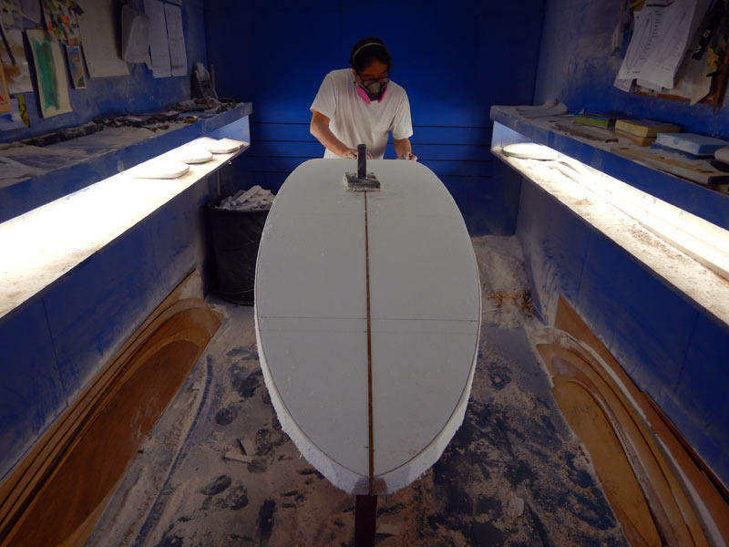 ショップのオープンは2001年。それ以来、ロングボードをベースに、フィッシュ、ボンザー、シングルフィン、ニーボード、パイポとさまざまな種類のサーフボードを作り、試してきました。