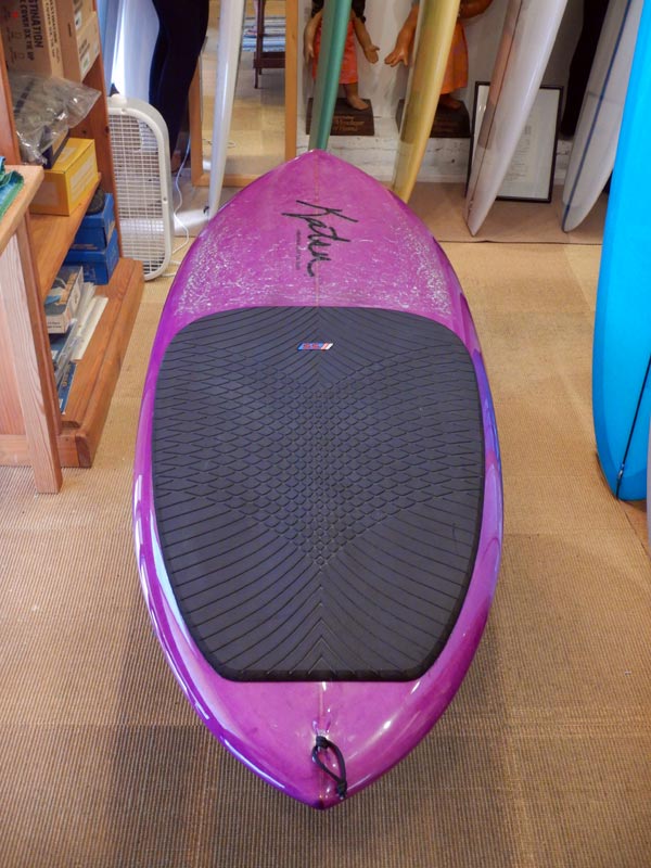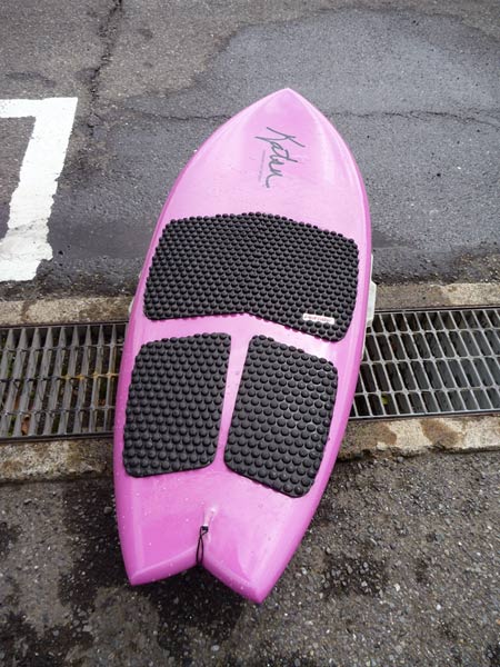 そして、HULLとは違いますがこれと同じボトムとレールでシェイプしたのが、ちょっと前にご紹介したスペシャルMINIモデル(笑)です。こちらは普通にテールコントロールできますが、ダウンザラインでは上のハルとにボードと同じくらい気持ち良く走ります。