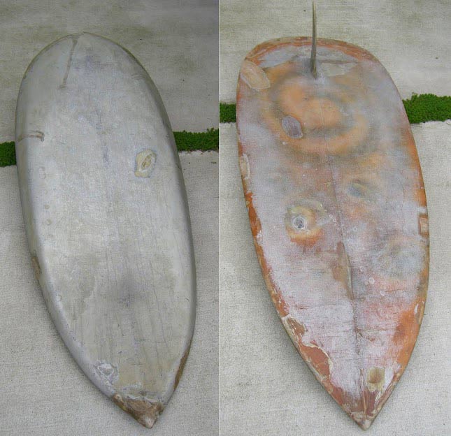 これが面白いのです。シングル、ツイン、トライ、クアッドの古いニーボードがどんどんアップされてきますが、普通のサーフボードと同じに思ってはいけません。トライもクアッドも皆さまが思い浮かべるものとは、かなり違うモノになっています。なってったって、ニーボードです。