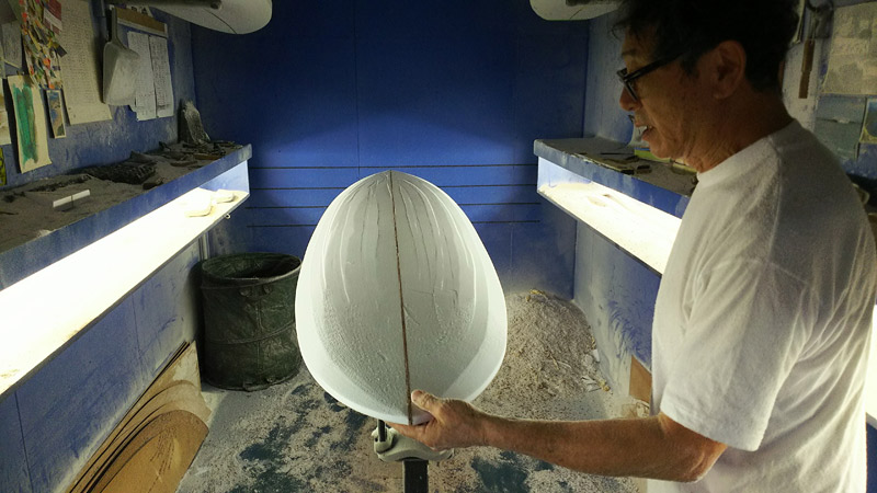 ショップのオープンは2001年。それ以来、ロングボードをベースに、フィッシュ、ボンザー、シングルフィン、ニーボード、パイポとさまざまな種類のサーフボードを作り、試してきました。