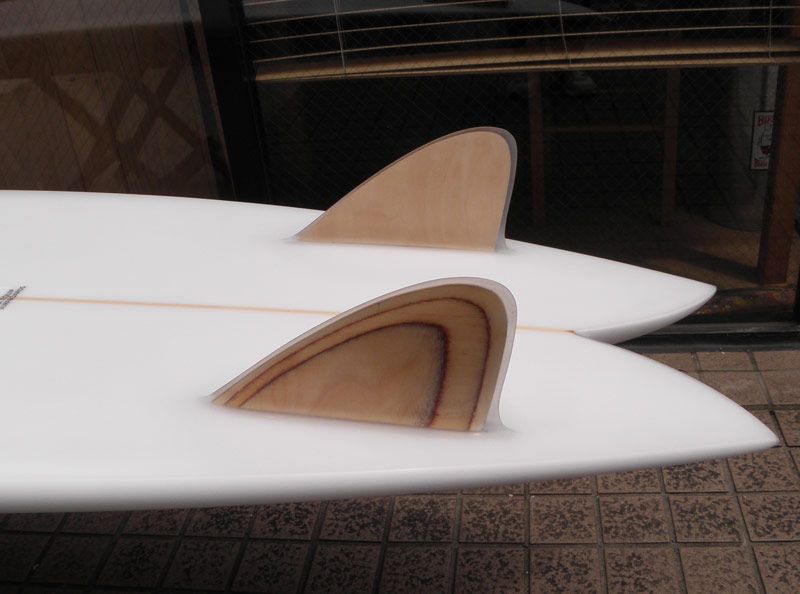 フィッシュ同様、ストレートなアウトラインはスピードが出ます。フィッシュほどテールが沈みこまない幅が広めのスワローテールでスムースにカーブするフィンのセッティングになっています。