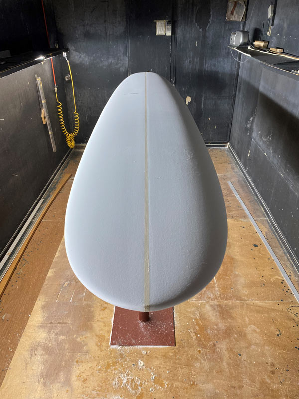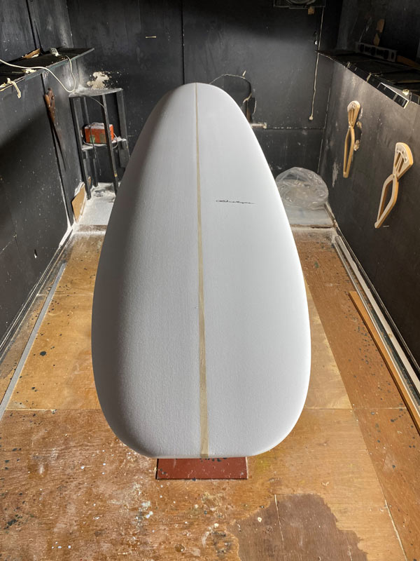 ロングフィッシュは、同じ8フィートがストックとして入荷予定です。カラーはこれと同じでクリア。ダークウッドストリンガーでボランパッチを入れています。