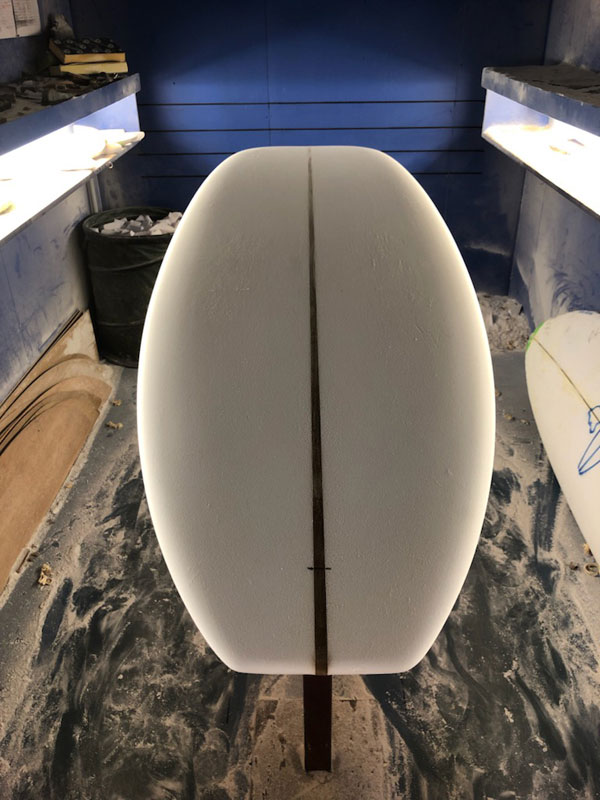 8フィート6インチのPIGを作ってくださいというリクエストから始まった、ちょっと短めのログ作り。ご希望のダークウッドストリンガーのブランクスが到着してシェイプスタートしました。
