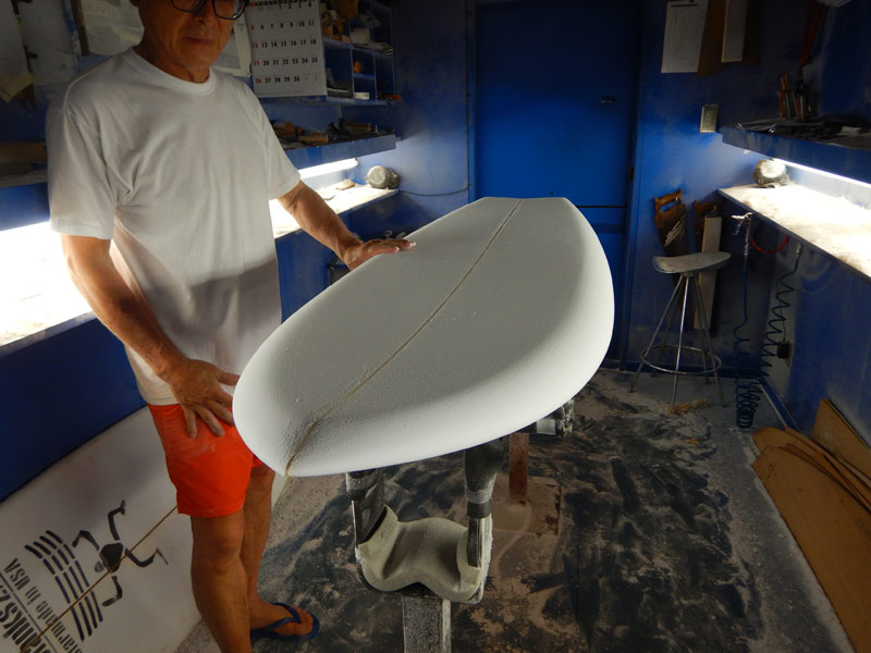 ショップのオープンは2001年。それ以来、ロングボードをベースに、フィッシュ、ボンザー、シングルフィン、ニーボード、パイポとさまざまな種類のサーフボードを作り、試してきました。