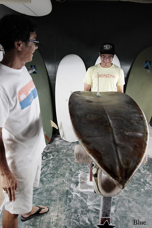 ハンドシェイプはすべて一人のシェイパーの手によるものです。もしかしたら失敗もあるかもしれません。人間ですから。でも、そういうものも含めて川南活さんという、日本の波乗りの歴史が始まった時代からのシェイパーが作り出す一本のサーフボードが持つ価値は、それに支払う対価だけでは測れないものがあると思うのです。