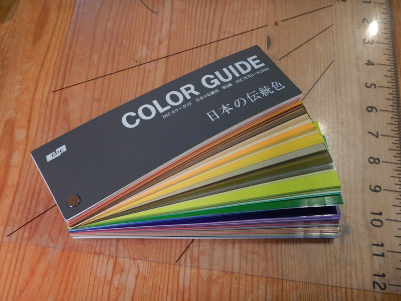 それなら、もう日本の色にしてしまえばいいじゃんと、これを買ってきました。DICの日本の伝統色シリーズです。会社勤めのときは、こういうものを使う仕事もやっていたのでお馴染みです。