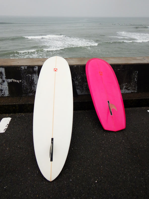 ボードはこの二本です。お馴染み8’4”のプリモと本日初日の5’8”ニーボード。