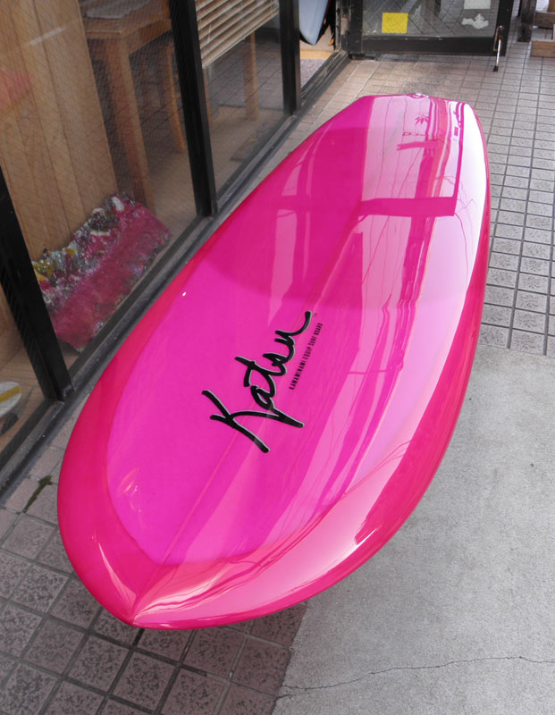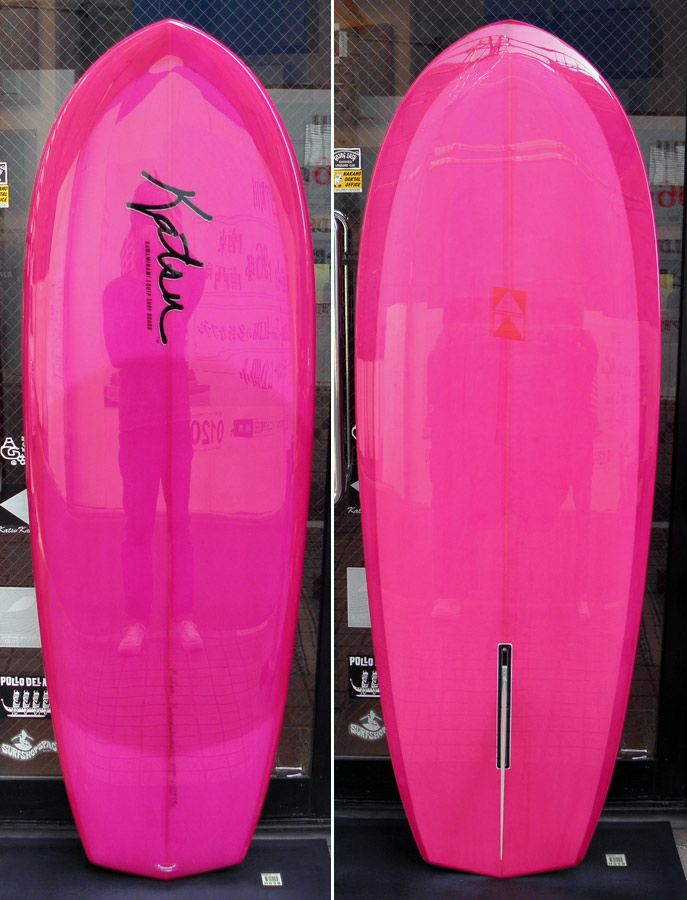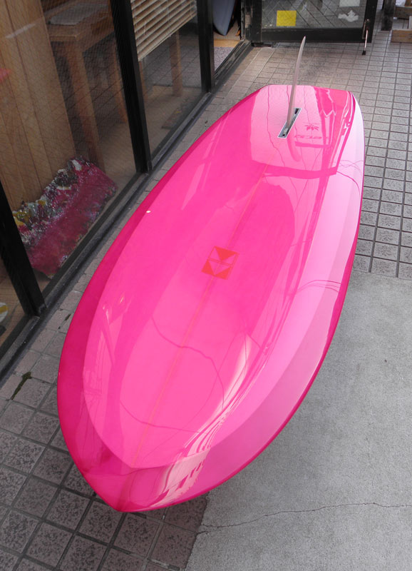 スタンディングでも使えそうなシングルフィンニーボードです。ボトムのシェイプ、見に来てください。