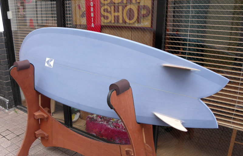 20年前のフィッシュリバイバルのときに、そのツインフィンをイメージしながら作られたのが、KK FISHです。そういう意味では、世の中にいろいろなフィッシュのシェイプがありますが、KK FISHは活さんのオリジナルのデザインを言うことができます(ちなみにこのリノ・アベリラのボードから生まれたもう一つのツインフィンが、BOOGIEというモデルです)。