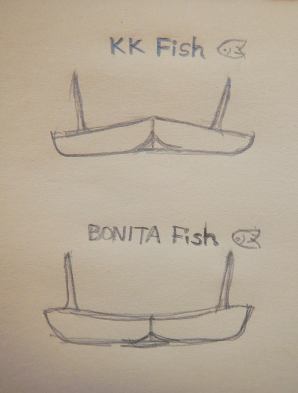 さて昨日は時間が無くて書ききれなかったフィッシュのお話の続きです。カツカワミナミサーフボードのフィッシュシェイプには、KK FISHとBONITA FISHの二つがありますが、それぞれの違いについてのお話です。