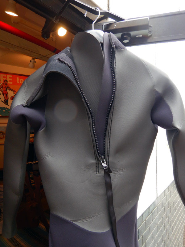 ここは外見では分からない、構造上の違いです。3ミリフルスーツは比較的水温が高い時期に使うことが多いので、背中のジッパー周りが防水構造になっていないものもあります。
