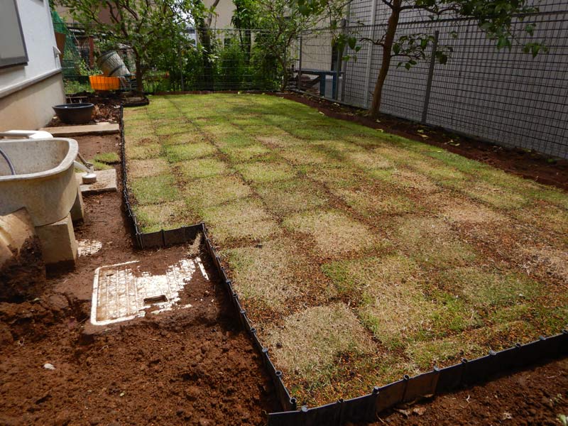 何かといいますと、庭の芝生張りです。家庭菜園をやっていたのですが畑仕事に時間がなかなか取れず、荒れ気味になっていたので(畑よりは)手間がかからない芝生を張ってしまおうと考えました。